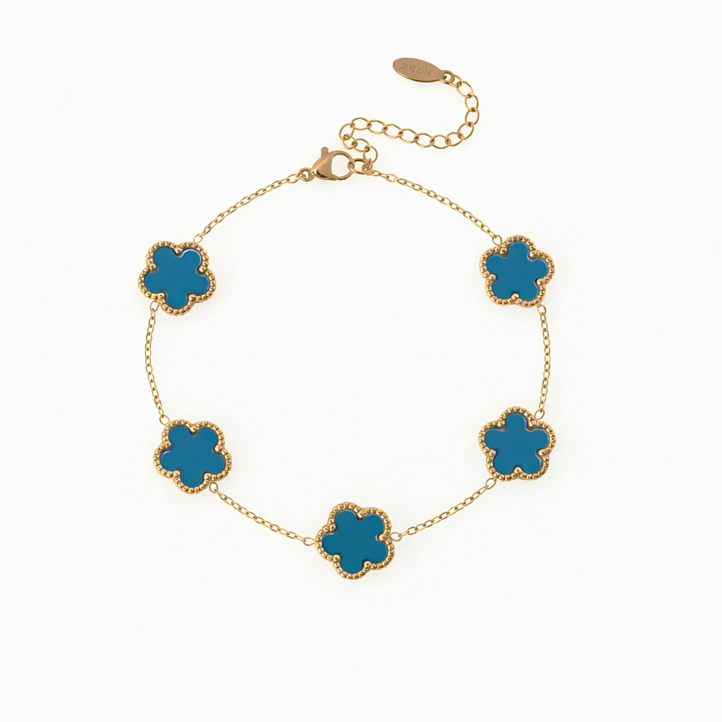 Vierblättriges-Klee-Armband Blau Gold Schiffe