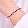 The Ayana Ruby Bracelet reinterprets the classic elegance of tennis with intense ruby red stones . The stainless steel construction enhances the color contrast, making it a striking accessory. Perfect worn alone as a highlight or paired with other bracelets for a more sophisticated look.
