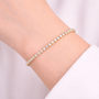 The Vesta Bracelet embodies the quintessential sense of discreet luxury. This timeless tennis bracelet is crafted from stainless steel with a warm gold finish, highlighting the purity of the brilliant-cut white crystals set along the entire chain. A jewel designed to illuminate every gesture, perfect for those seeking a versatile highlight capable of instantly elevating both daytime and elegant evening outfits.