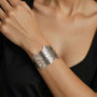 Stand out with the unique character of the Canopia Bracelet, a masterpiece of silver-plated metal design. This bracelet features an intricate openwork pattern that evokes the delicacy of nature, making it a unique and refined accessory.