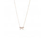 Let yourself be captivated by the refinement of the Crystal Bow Necklace, a simple metal jewel in golden tone that adds a touch of grace to any outfit. This piece of women's jewelry features a delicate bow adorned with sparkling crystals, perfect for every occasion.