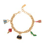 La pulsera Cadena de Ánimo Dorada es una joya refinada y alegre, perfecta para añadir un toque de elegancia a tu atuendo diario. Hecha de metal dorado, cuenta con una cadena ajustable de 17 a 21 cm, adornada con dijes coloridos que representan íconos de estilo como un zapato de tacón, un bolso, un helado y más.