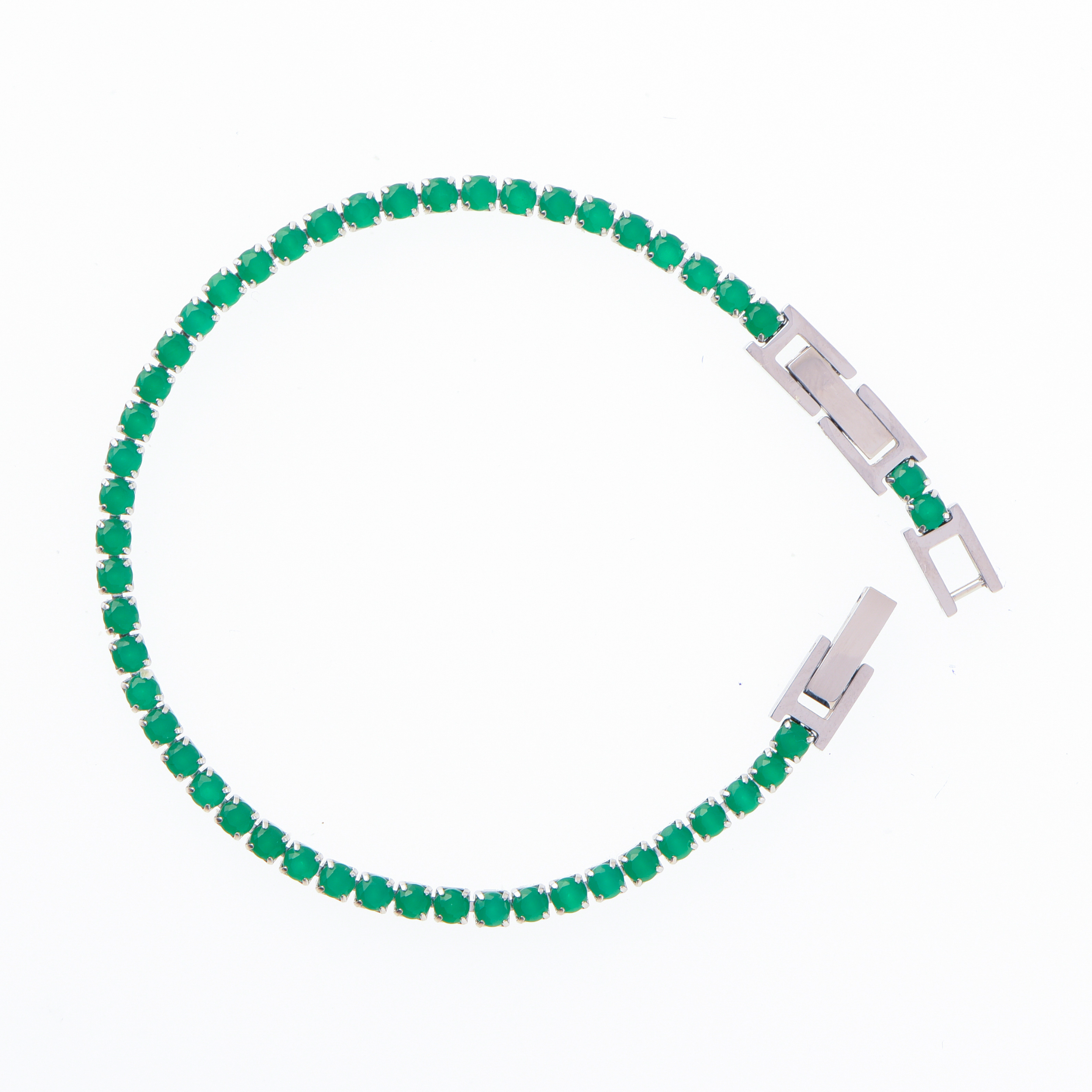 El Pulsera Dominus Verde Reimagina el modelo de tenis con luminosas piedras verdes, creando un juego de reflejos que aporta a la muñeca un toque refinado y distintivo. La montura metálica realza el color de las piedras, convirtiéndolo en un accesorio ideal tanto para looks cotidianos como para conjuntos más elegantes. Ideal para lucir solo como pieza destacada o combinado con otras pulseras para un look más sofisticado.