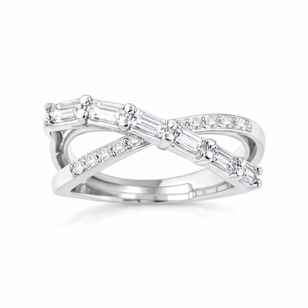 L'Anello Manila Bianco si distingue per il suo design a incrocio dalle linee fluenti, dove l'armonia di una doppia fila di pietre bianche brillanti crea un gioco di riflessi senza tempo. Un gioiello contemporaneo, perfetto per chi cerca un'eleganza classica ma rivisitata in chiave moderna.
