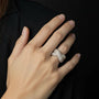 Lasciati ispirare dall'eleganza timeless dell'Anello Silver Starlight Weave. Questo anello in metallo argento è un capolavoro di raffinatezza, caratterizzato da un design intrecciato e impreziosito da scintillanti pietre che catturano la luce da ogni angolazione.