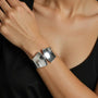 Eleva il tuo stile attraverso la geometria perfetta del Bracciale Melt, un gioiello raffinato realizzato in metallo argento. Questo bracciale dal design unico e moderno si distingue per le sue linee fluide e la sua finitura lucida, perfetto per aggiungere un tocco di eleganza a qualsiasi outfit.
