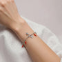 Ammira il Bracciale Protect Silver, un gioiello raffinato e minimalista in metallo argentato. Questo bracciale regolabile da 18 a 21 cm è adornato da ciondoli a forma di cuore e cornetti rossi, simboli tradizionali di protezione e fortuna.