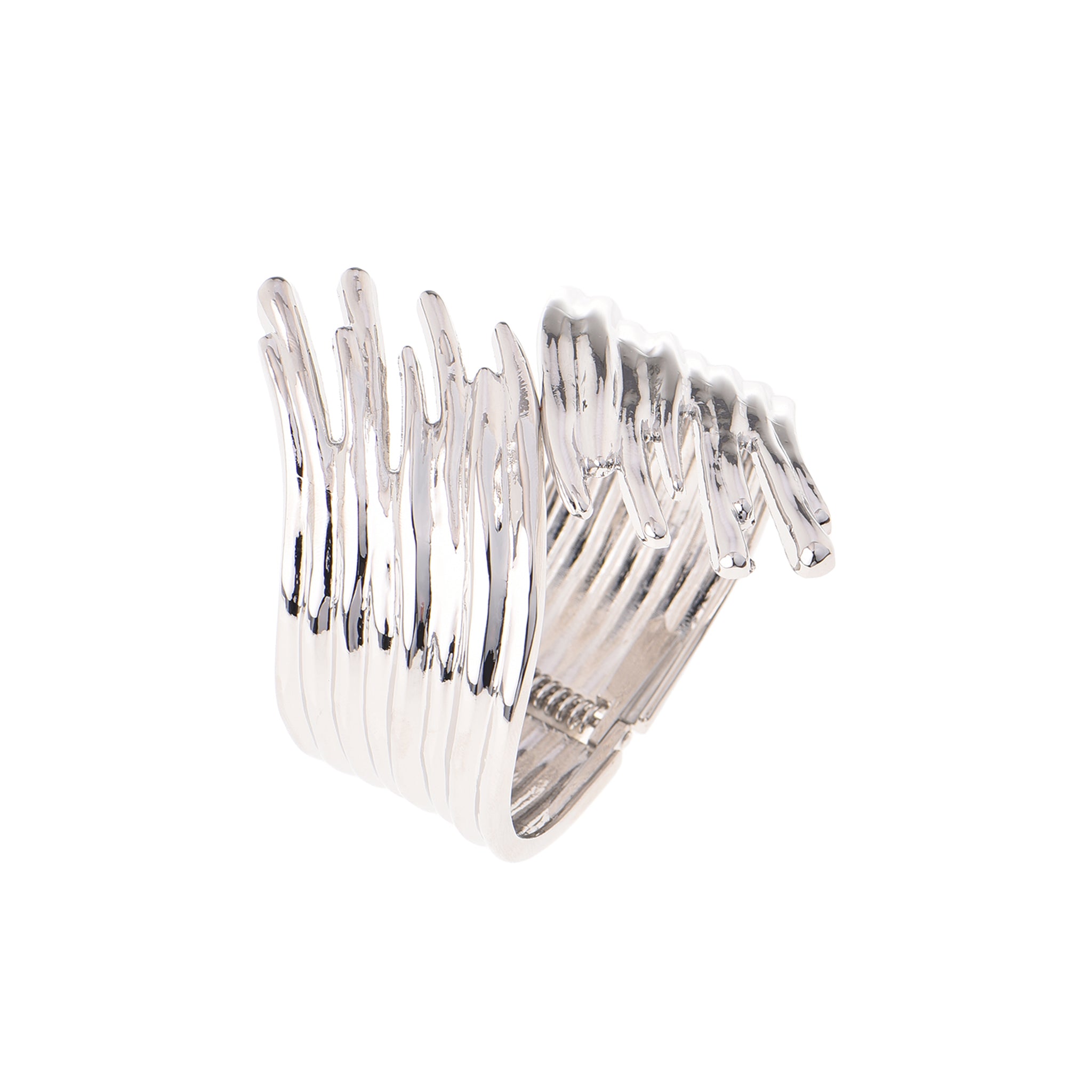 Ammira la precisione sartoriale del Bracciale Waveform. Realizzato in metallo argentato, questo bracciale presenta un design ondulato unico che cattura l'essenza delle onde. Perfetto per aggiungere un tocco di eleganza moderna al tuo look quotidiano.