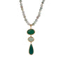 Scopri la Collana Mediterranea White and Green, un gioiello sartoriale che combina eleganza e precisione. Realizzata in metallo dorato, questa collana presenta perle bianche e verdi, culminando in un pendente scultoreo con pietre verdi incastonate. La lunghezza regolabile di 42-46 cm assicura una vestibilità perfetta.
